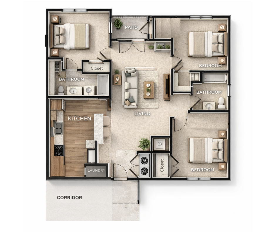 3 Bedroom Garden Townhome